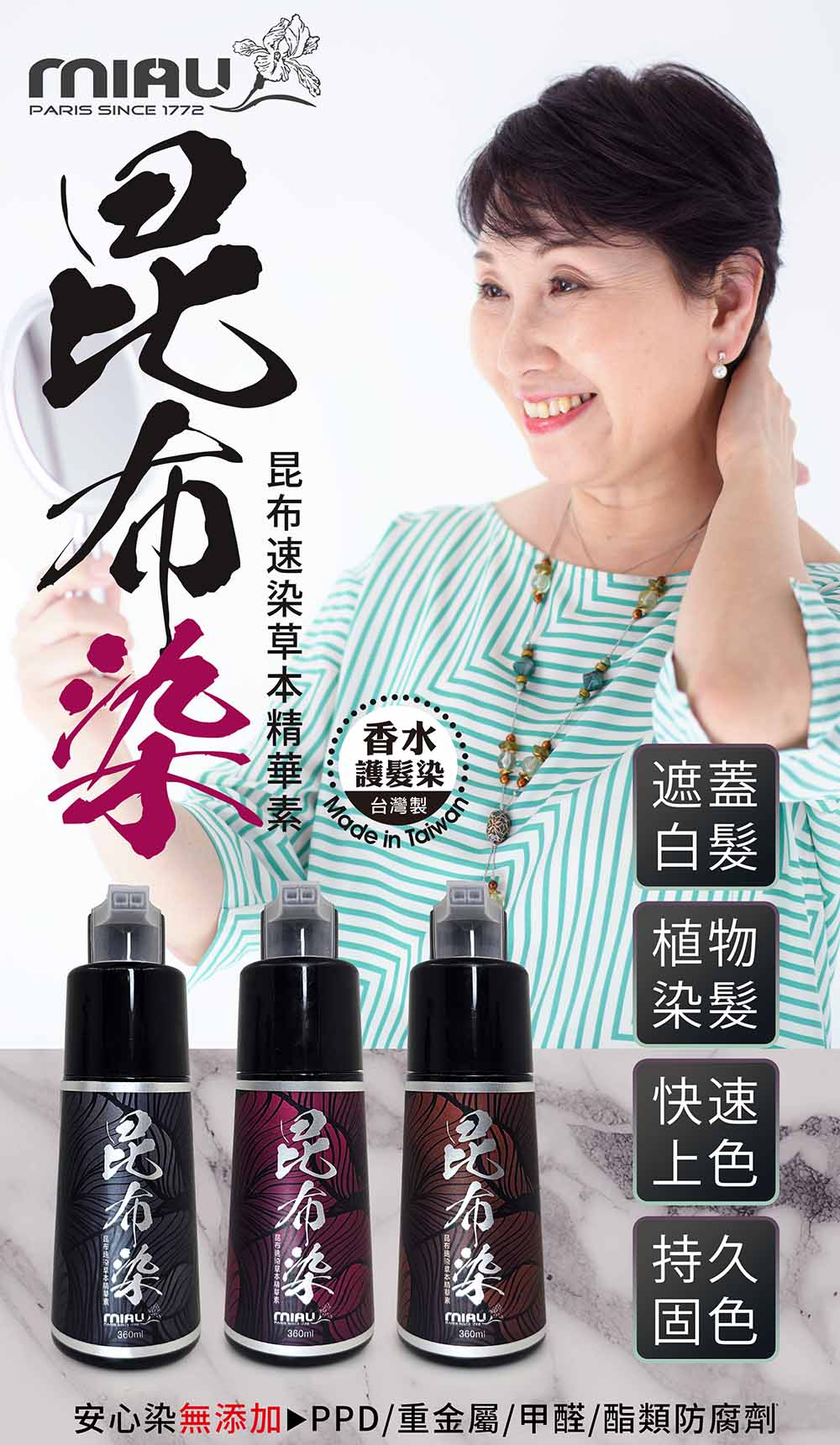 11分鐘前MIAU【昆布速染草本精華素】完美遮蓋白髮/染髮只要10分鐘/修護和鎖色的無臭配方/台灣生產〈無添加PPD/重金屬/甲醛/酯類防腐劑〉 - 均460/瓶►昆布染黑x3瓶組