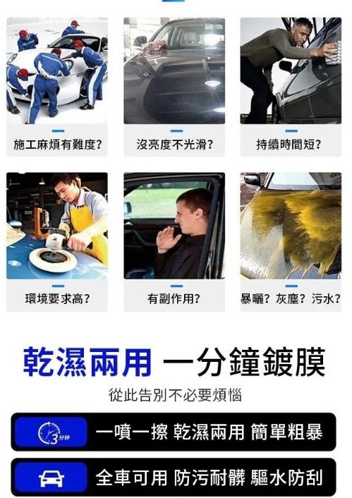 7分鐘前全台車友狂推NO.1的【納米汽車鍍膜液】一噴一擦變新車,鍍膜塗層長期保護車漆,灰塵、泥土、雨水一滴不沾! 限時特惠!! - 【特惠3入組】贈送汽車鍍膜毛巾3條 僅需 NT$998