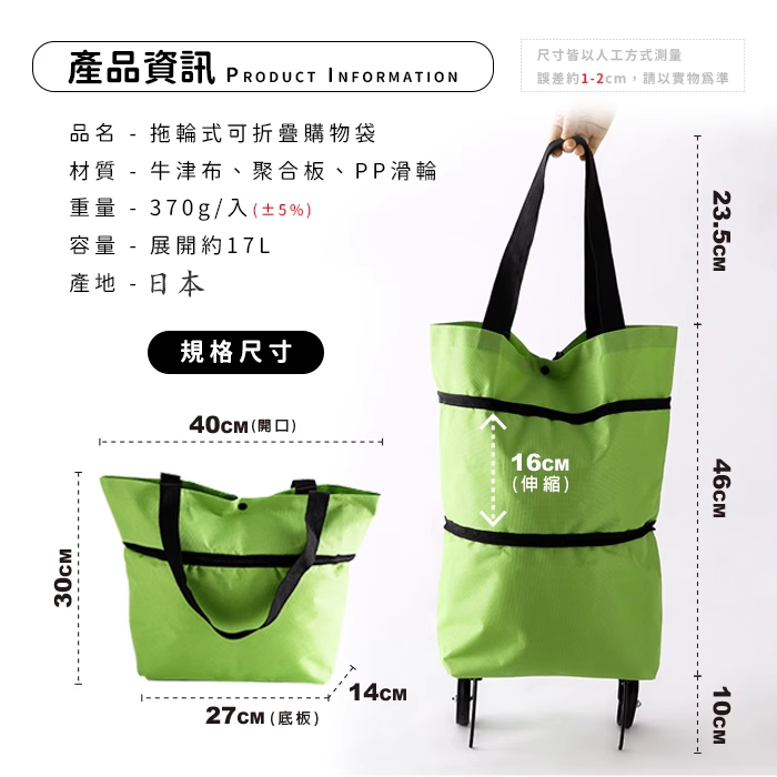 5分鐘前【爆款折疊購物車袋手拉車】手提袋購物車隨意切換一物兩用,容量大可裝多物品 省力貼心 環保生活從我做起 - 【買一送一 NT$899二入組】