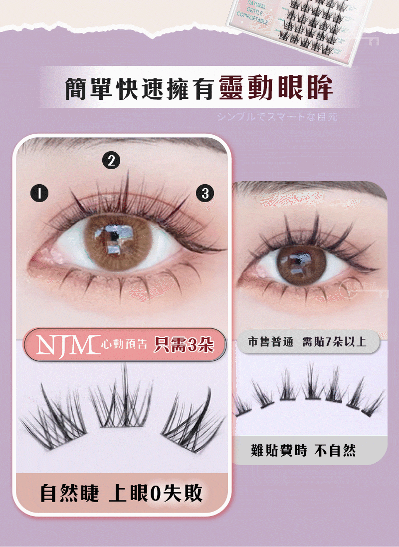 12分鐘前【限時買一送一】日本爆款吸睛NJM懶人睫毛,一秒粘貼 輕盈超細梗 自然不做作~轉為亞洲人眼型設計,上班 / 上學 / 約會 快速上妝秒出門 - 【超值組合 買二送二】NJM懶人假睫毛四入組(一秒粘貼 輕盈超細梗 自然不做作)-NT$ 990