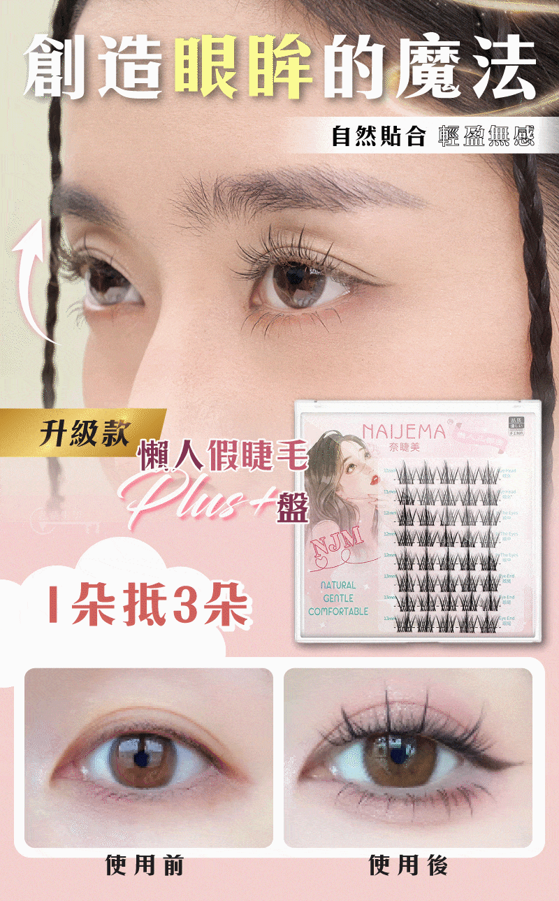 12分鐘前【限時買一送一】日本爆款吸睛NJM懶人睫毛,一秒粘貼 輕盈超細梗 自然不做作~轉為亞洲人眼型設計,上班 / 上學 / 約會 快速上妝秒出門 - 【99%的人選擇 買三送三】NJM懶人假睫毛六入組(一秒粘貼 輕盈超細梗 自然不做作)-NT$ 1380