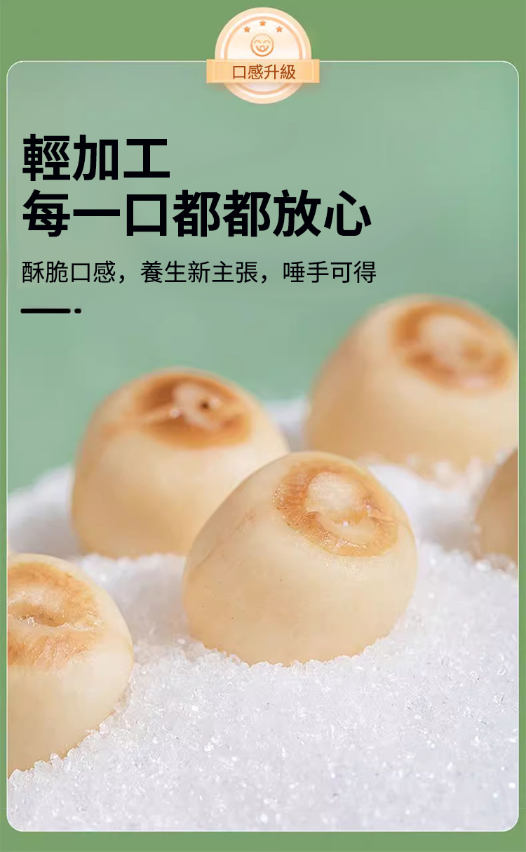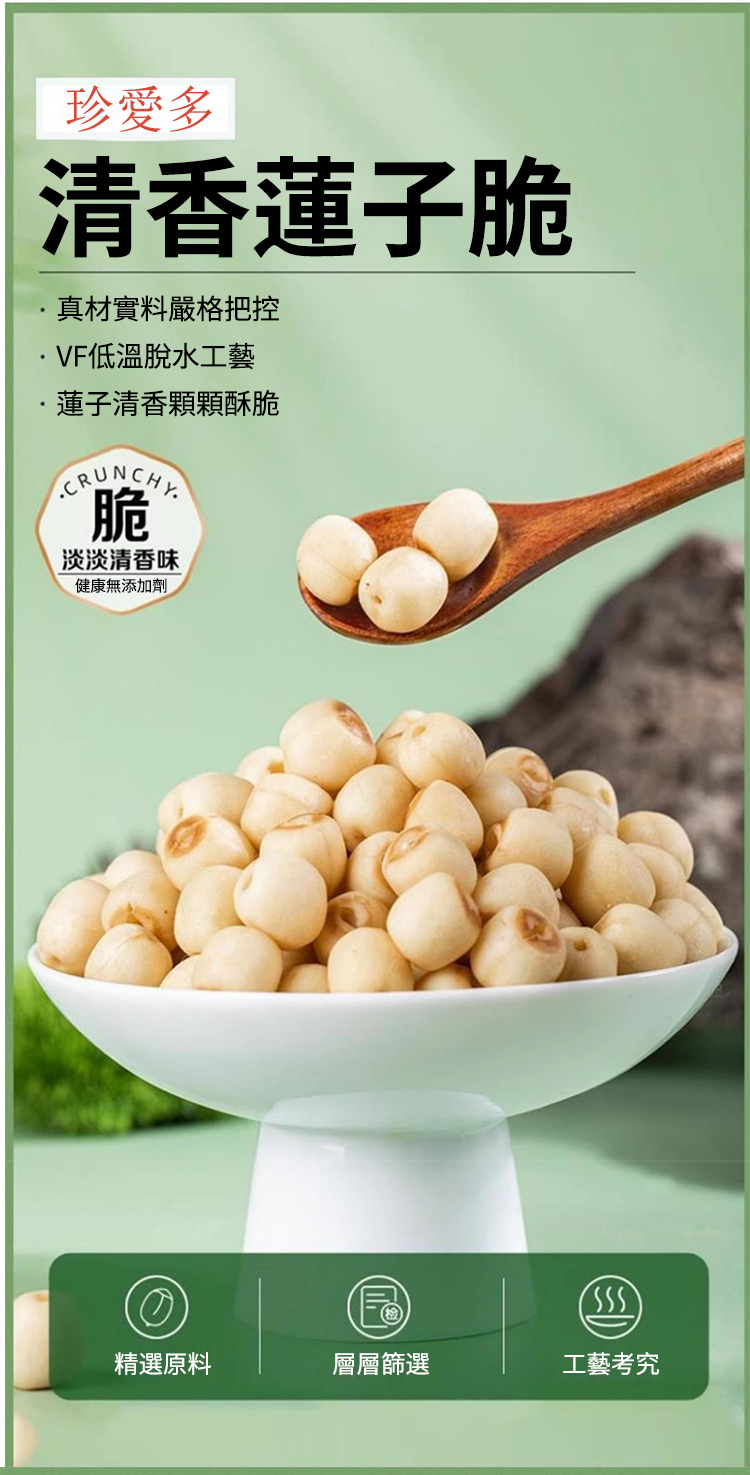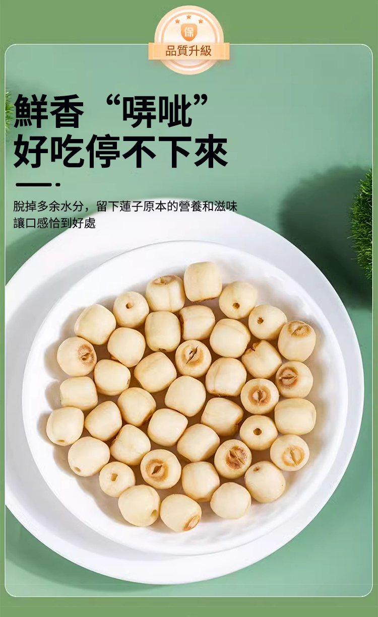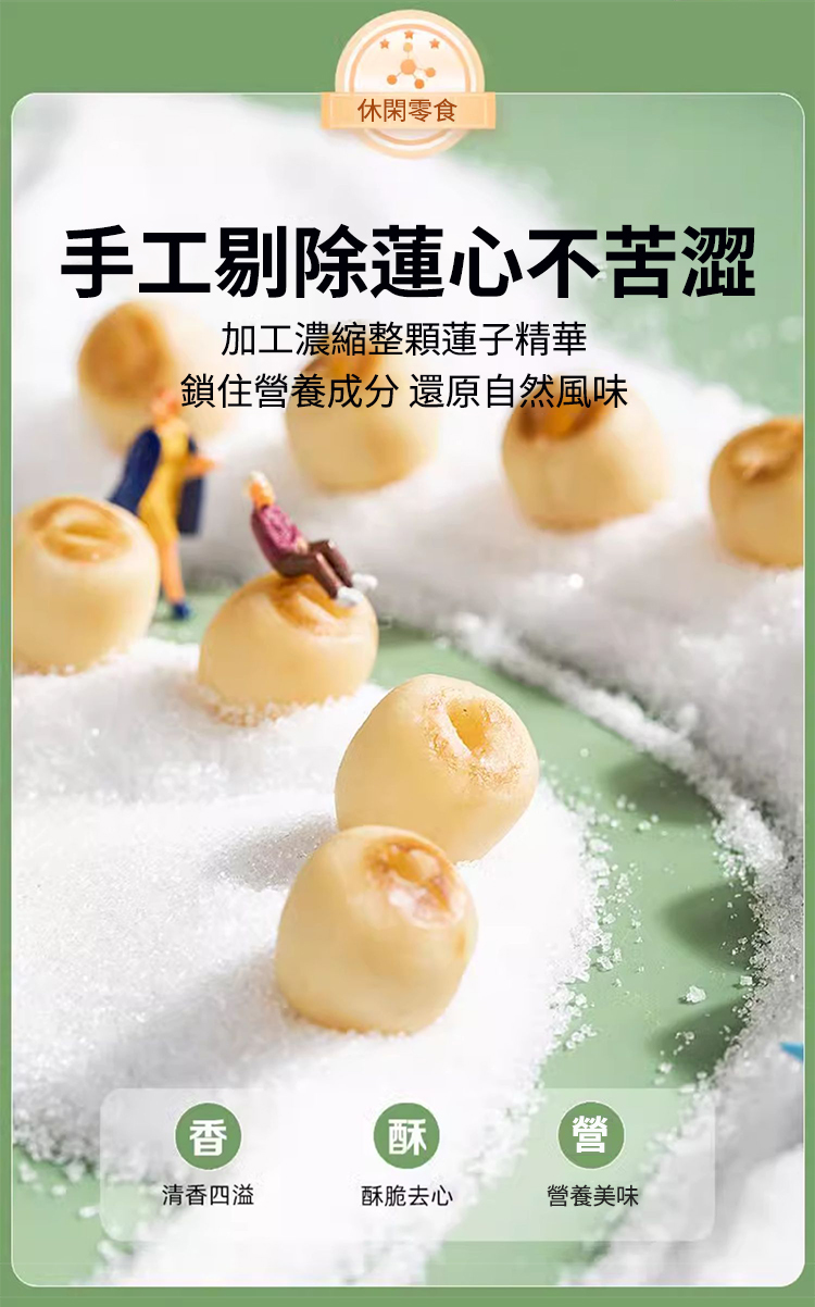 25分鐘前開袋即食的蓮子脆,不用泡開袋即食的蓮子脆,健康又方便,清香酥脆,百吃不膩,全家都愛吃!水蒸煮,健康又方便,清香酥脆,百吃不膩,全家都愛吃! - 超值囤貨【五入組】限時特價!NT$1598