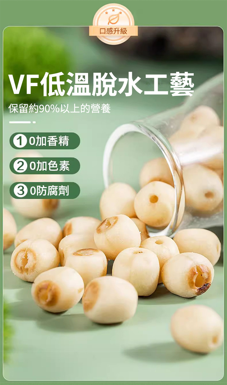 20分鐘前開袋即食的蓮子脆,不用泡開袋即食的蓮子脆,健康又方便,清香酥脆,百吃不膩,全家都愛吃!水蒸煮,健康又方便,清香酥脆,百吃不膩,全家都愛吃! - 超值囤貨【五入組】限時特價!NT$1598
