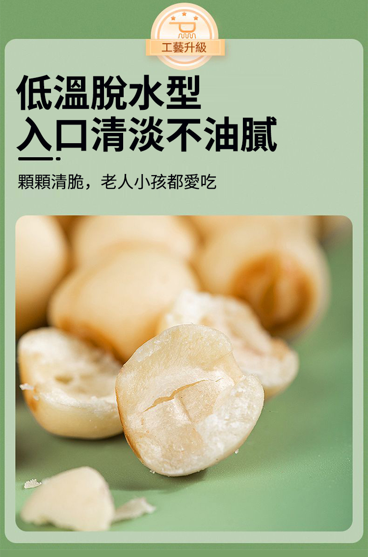半小時前開袋即食的蓮子脆,不用泡開袋即食的蓮子脆,健康又方便,清香酥脆,百吃不膩,全家都愛吃!水蒸煮,健康又方便,清香酥脆,百吃不膩,全家都愛吃! - 【新品嘗鮮】【二入組】 NT$998
