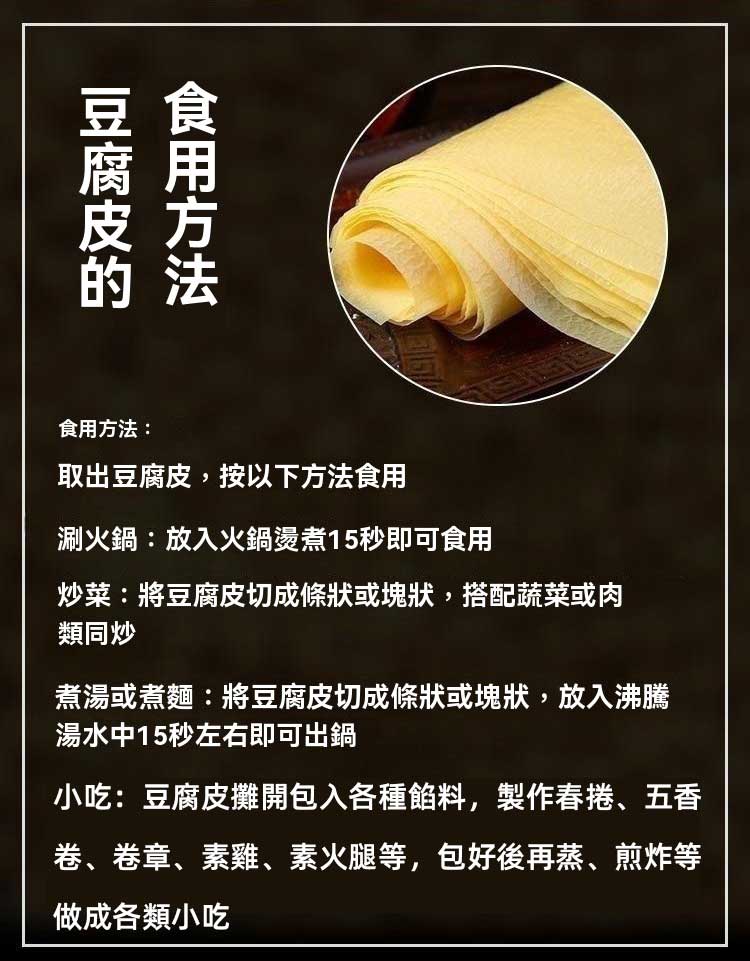 25分鐘前【正宗頭層手工蟬翼豆腐皮】採用高山有機大豆,手工製作的頭層豆皮,薄如蟬翼,做春卷,響鈴,涼拌菜等,多種吃法,煮湯,炒菜都可以。 - 【原漿製作 不香包退】4入組(約200張)NT$1398