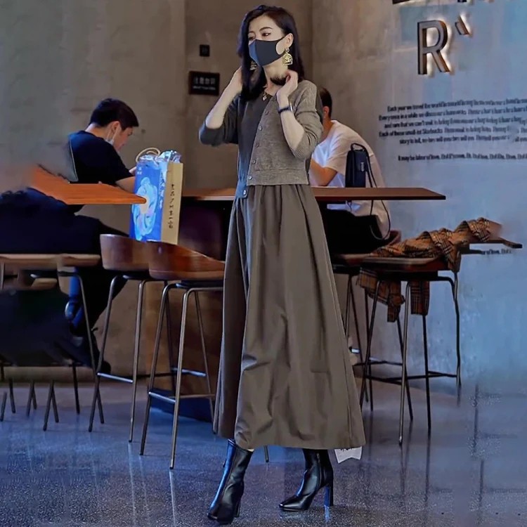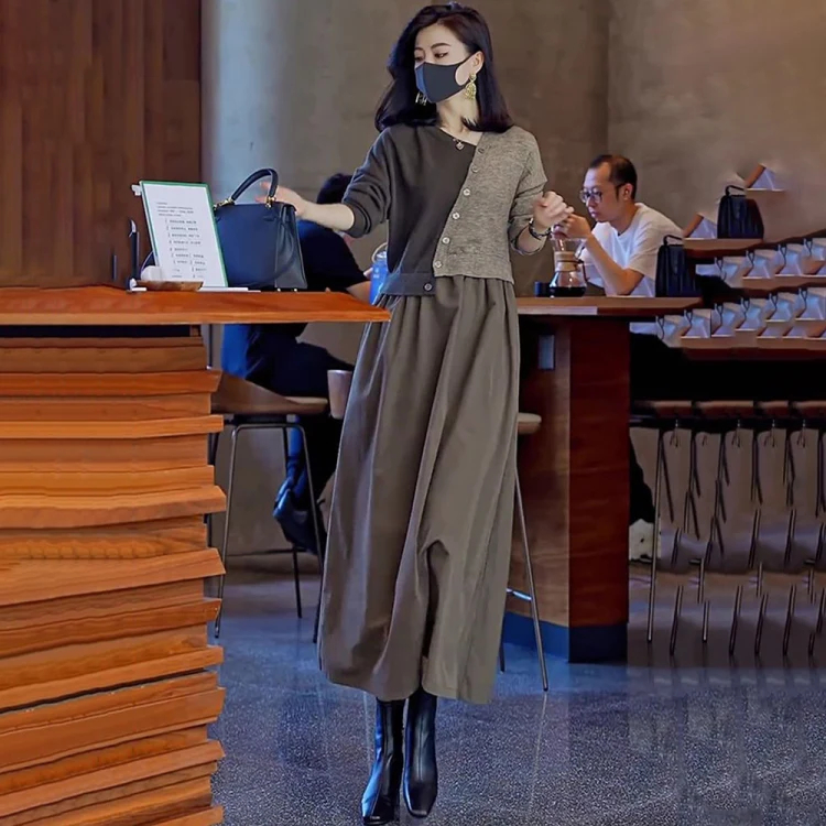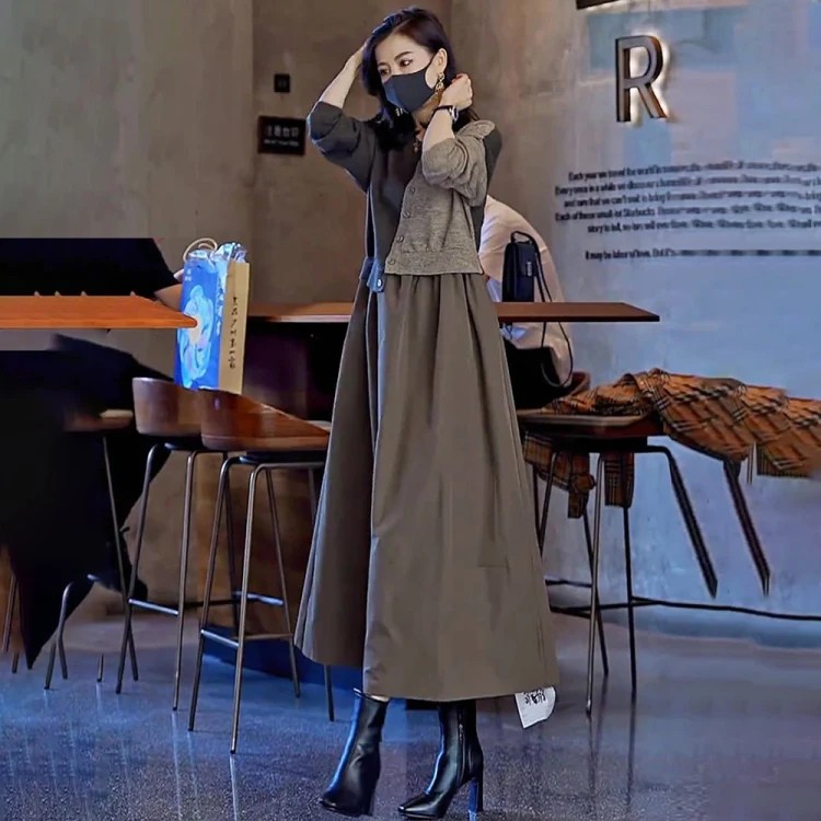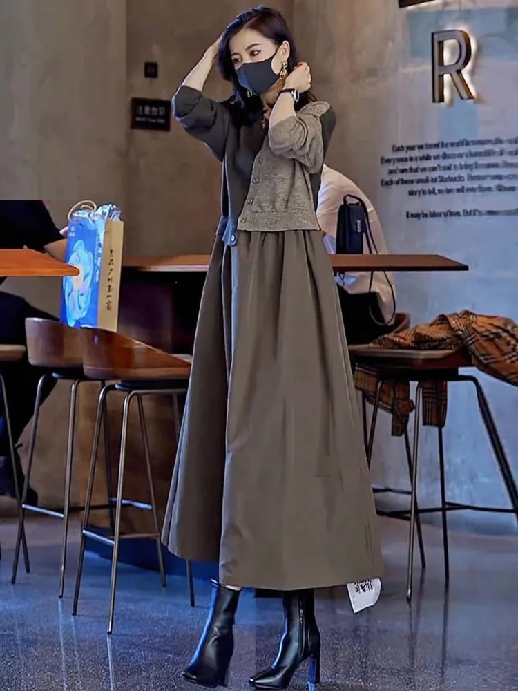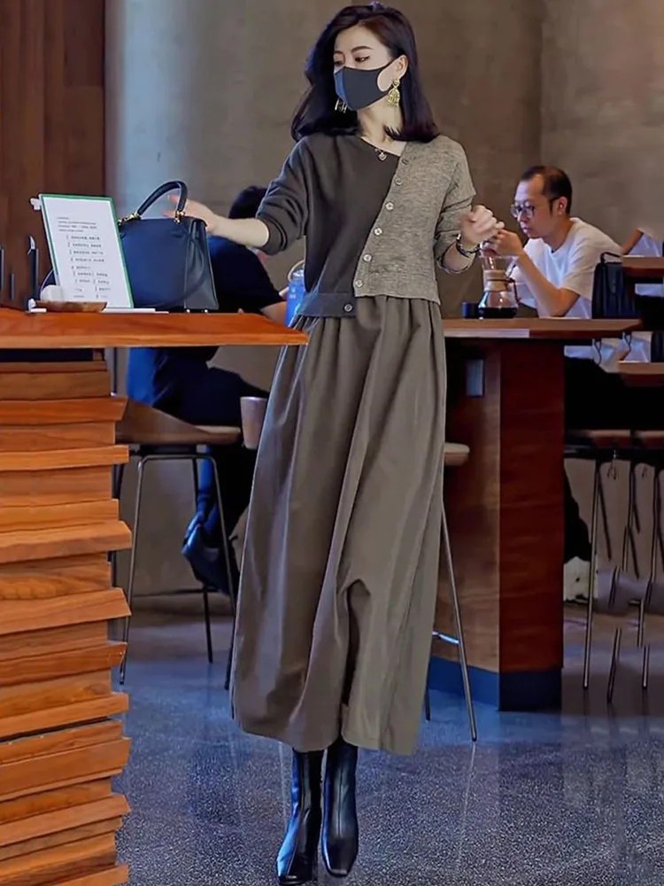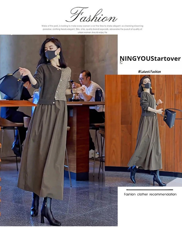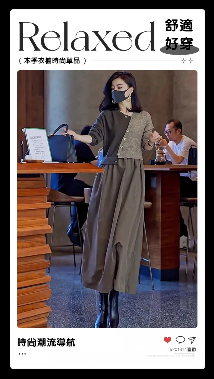 15分鐘前【限時活動 貨到付款】針織假兩件連衣裙,上身減齡顯氣質! - 一入組優惠價!NT1390