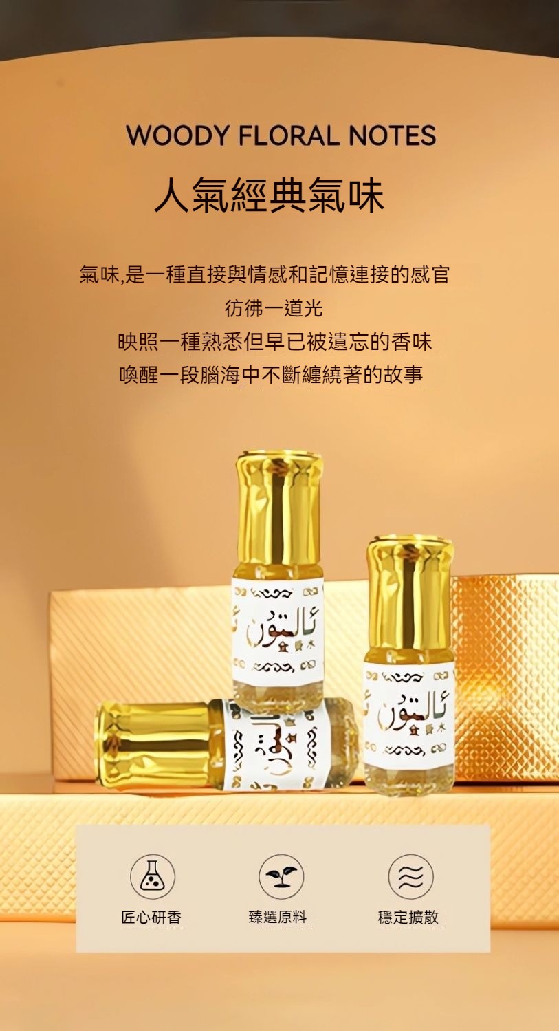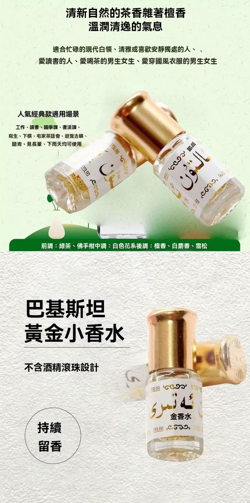半小時前巴基斯坦黃金香水的主要成分是不含酒精,不含麝香的高純度香精。 這種香水以其高濃度和持久留香的特點而受到關註。它的香味被描述為奶香奶氣的,帶有一種保護欲,聞起來非常舒適。香水的香味被形容為清雅的奶香,適合日常使用;巴基斯坦黃金香水以其高純度和持久留香的特性,能夠散發迷人的魅力,類似於古代歡宜香的效果,因此被賦予了歡宜香的稱號。這種香水不僅具有自然體香的效果,還能在特別場合帶來愉悅與放松的感覺, - 【團購優惠】24入組-NT$1280