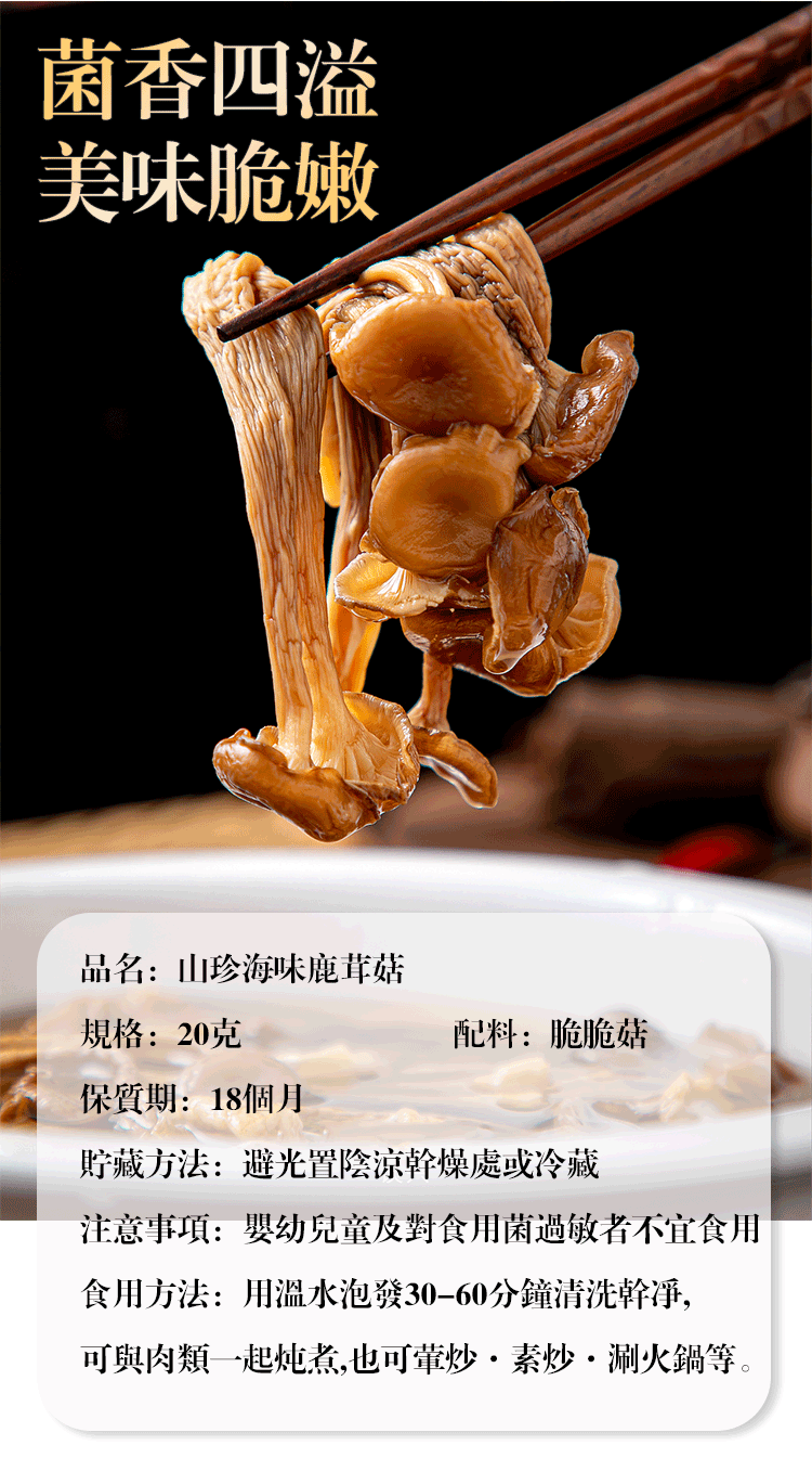 4分鐘前 【煲湯炒菜下飯必備】山珍海味鹿茸菇 #高山食材 #滋補養生 - 5入組-NT$998