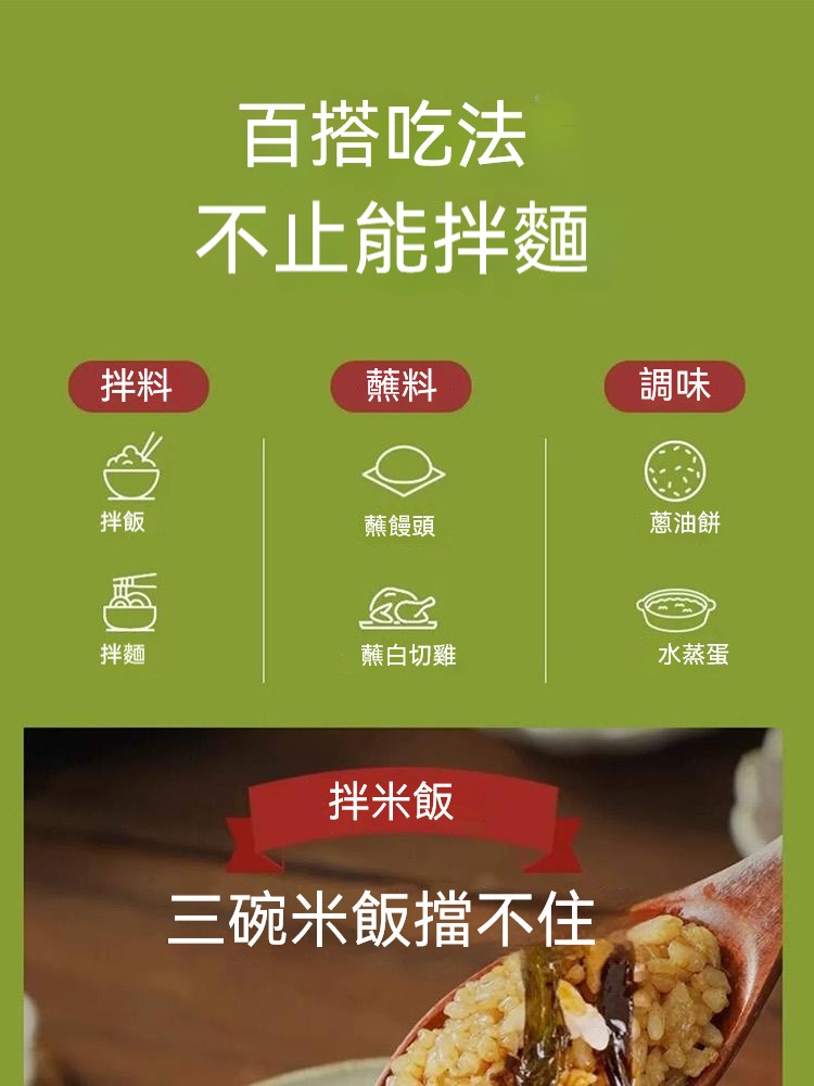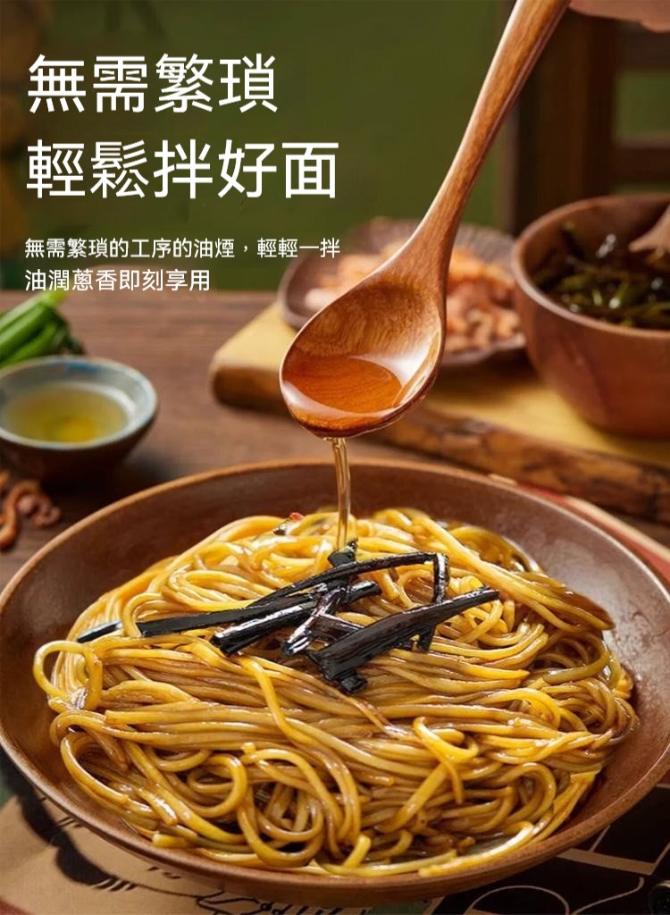 7分鐘前醇厚麵醬,完美搭配麵食,展現獨特風味 ,五分鐘就能吃上的蔥油拌面 ,無需繁瑣步驟 ,開瓶即食 油潤蔥香即刻享用 ,增鮮提香 ,秒變大廚 ,飯或者面都能一勺搞定 - 【98%客戶選擇】4入組-NT$1180