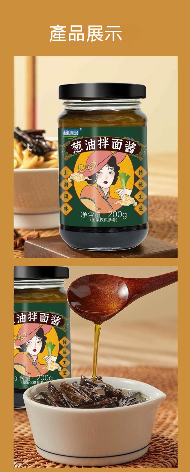 半小時前醇厚麵醬,完美搭配麵食,展現獨特風味 ,五分鐘就能吃上的蔥油拌面 ,無需繁瑣步驟 ,開瓶即食 油潤蔥香即刻享用 ,增鮮提香 ,秒變大廚 ,飯或者面都能一勺搞定 - 【划算裝】8入組-NT$1580