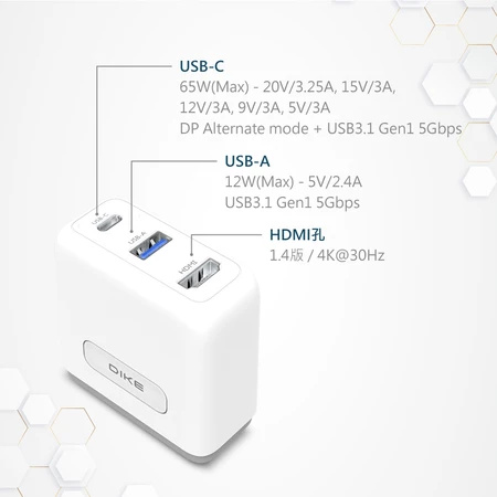 25分鐘前買一送二 IKE 65W GaN 氮化鎵充電器 【新款 HUB多功能 影像傳輸】 HUB 充電器 充電頭 旅充頭 - 【體驗價】1入組-NT988