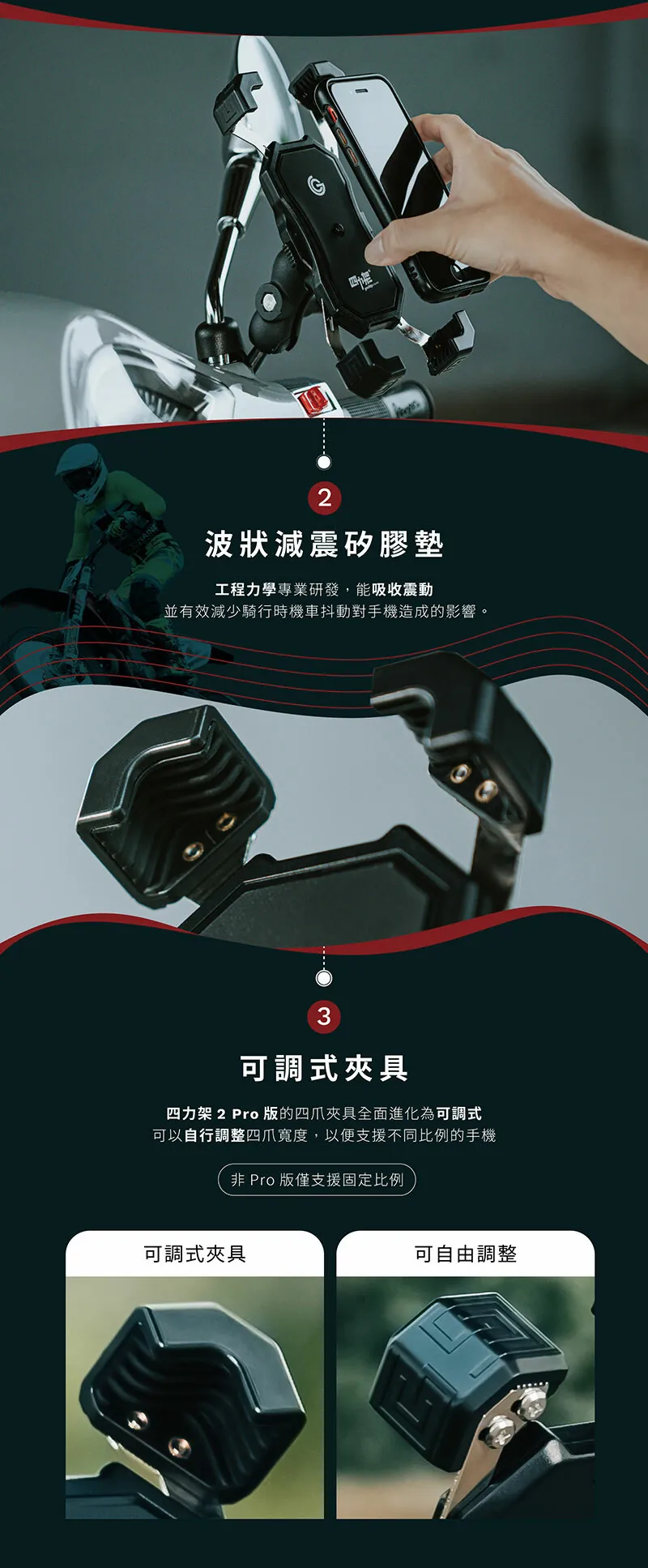 2分鐘前GC 四力架2 / 2s 單手操作 快人一步 最新四力架2 Pro 自動夾緊 USB充電 無線充電兩用機車手機架 外送必備 接單神器 - 四力架2s Pro(快充版)一入組NT$1,180