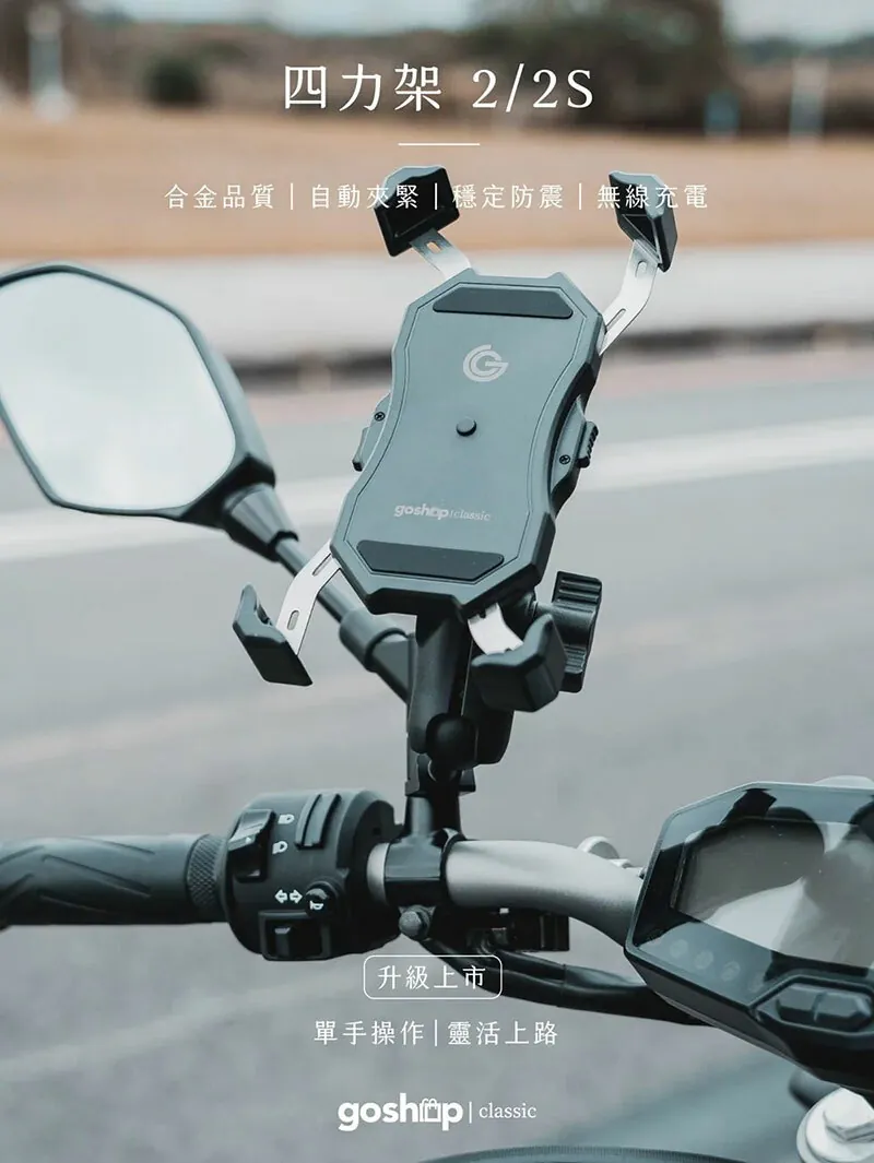 2分鐘前GC 四力架2 / 2s 單手操作 快人一步 最新四力架2 Pro 自動夾緊 USB充電 無線充電兩用機車手機架 外送必備 接單神器 - 四力架2s(通用快充版)一入組NT$1,080