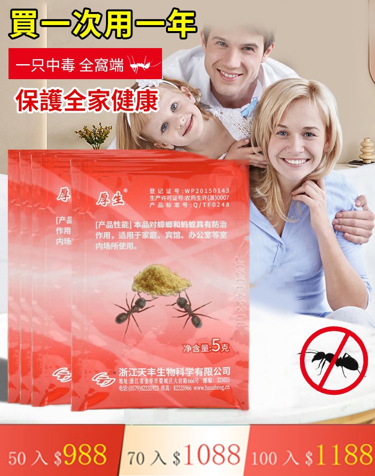 20分鐘前限時搶購 厚生螞蟻藥 火爆熱銷中!官方正品,免費試用!24小時在線客服,不好用直接退!售後無憂 - 超夯活動: 50包 NT$988