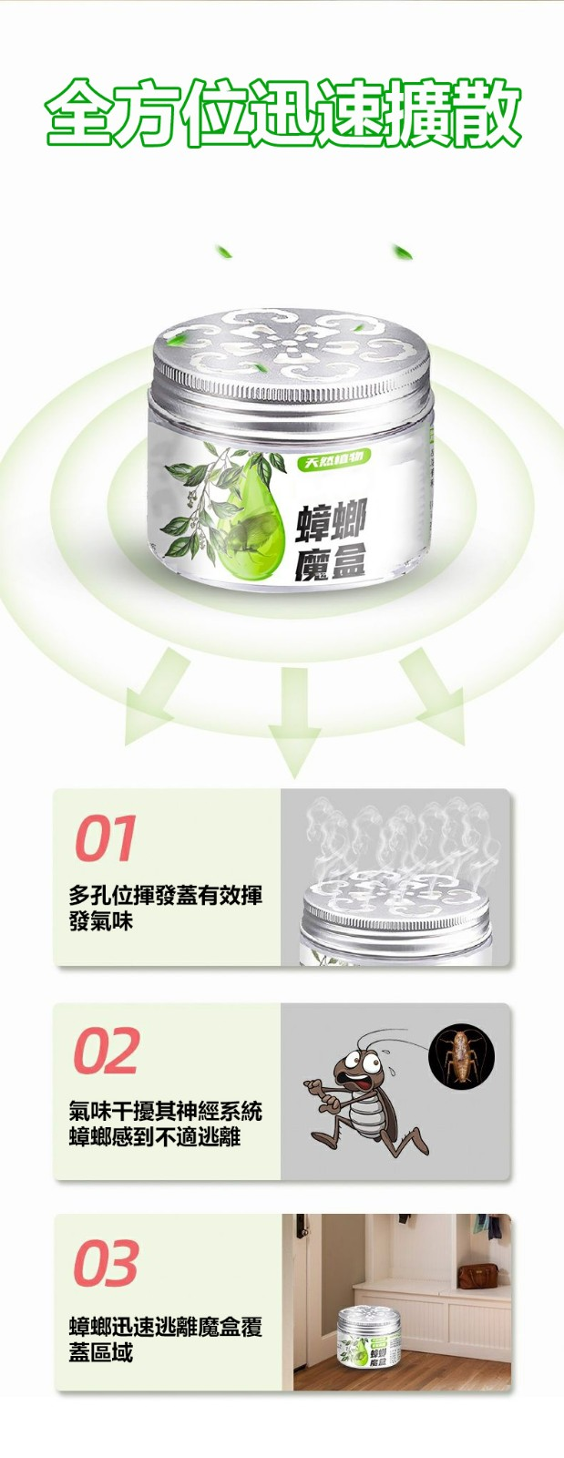 5分鐘前【日本驅蟲魔盒】蟑螂的生命力太頑強了!家裡只要有一隻那可就糟了,要不了幾天就會氾濫了!趕緊在家裡放這個【蟑螂魔盒】植物萃取不刺激,還能淨化空氣。母嬰可用,給家裡安裝一道屏障,讓蟑螂無處藏身 - 6入組NT$998