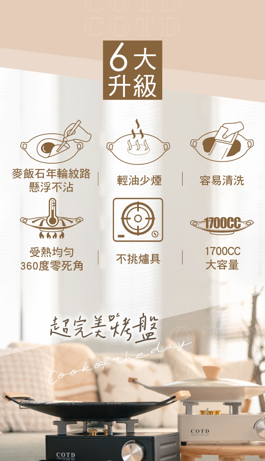 2分鐘前一鍋多用!聚餐必備好幫手! COTD超完美韓國烤盤 - COTD超完美烤盤38CM 售價NT$1280