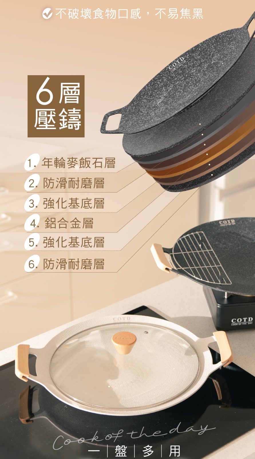 半小時前一鍋多用!聚餐必備好幫手! COTD超完美韓國烤盤 - COTD超完美烤盤34CM 售價NT$1180