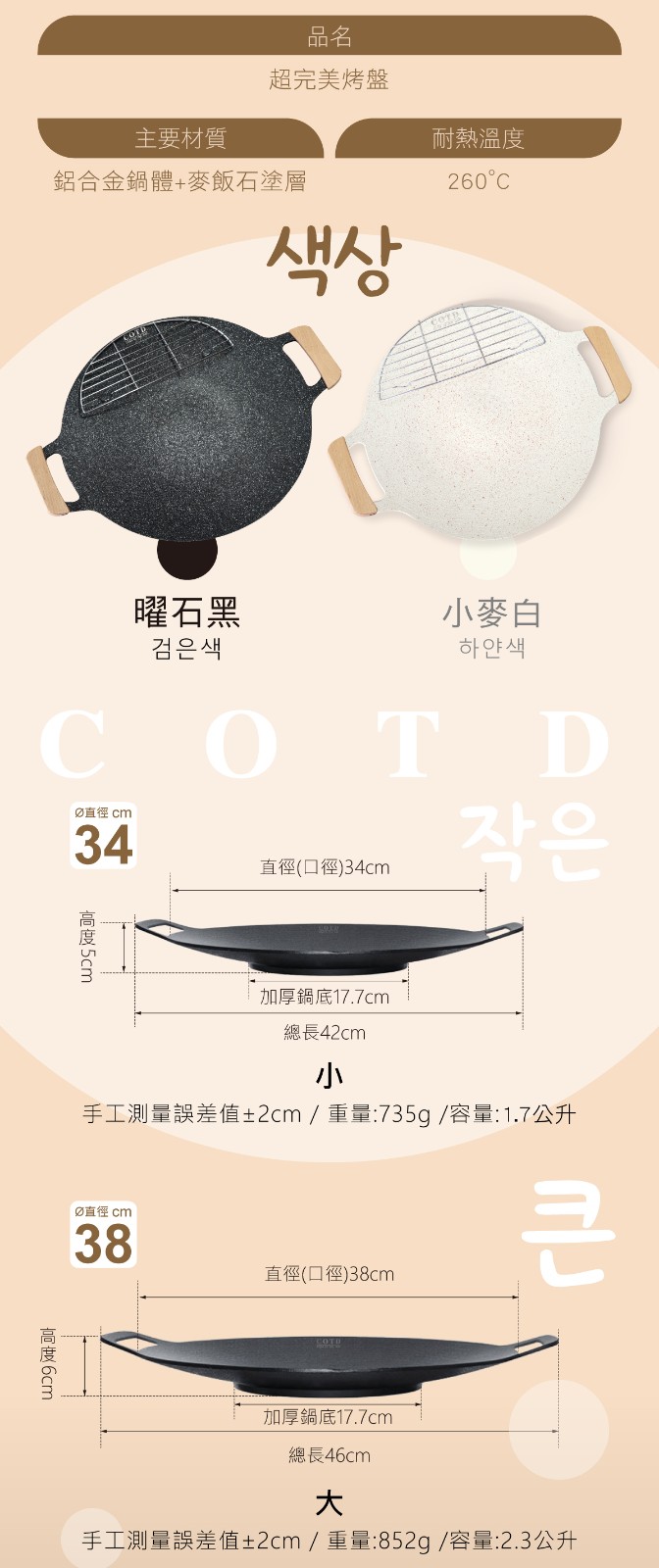 7分鐘前一鍋多用!聚餐必備好幫手! COTD超完美韓國烤盤 - COTD超完美烤盤34CM 售價NT$1180