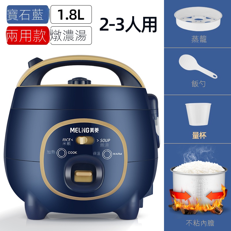 2分鐘前【美菱電器特價狂歡 限時85折 活動持續時間0729-0830號】美菱多功能迷你電飯煲,煮飯煲湯二合一,1-3人的量剛剛好,下單贈送蒸籠、米飯勺、量杯。 - 1件 NT$1290