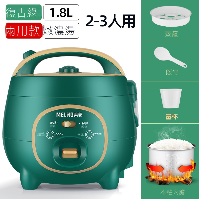 5分鐘前【美菱電器特價狂歡 限時85折 活動持續時間0729-0830號】美菱多功能迷你電飯煲,煮飯煲湯二合一,1-3人的量剛剛好,下單贈送蒸籠、米飯勺、量杯。 - 2件 NT$1999