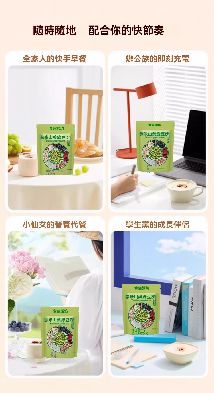 5分鐘前養生精選!薏米山藥綠豆沙 - 維生素滿點,清爽滋補甜品 - 【買四送二】養顏輕體套餐-共六袋NT$1298