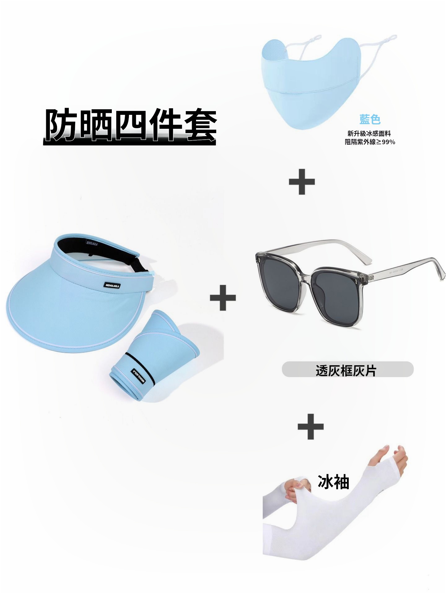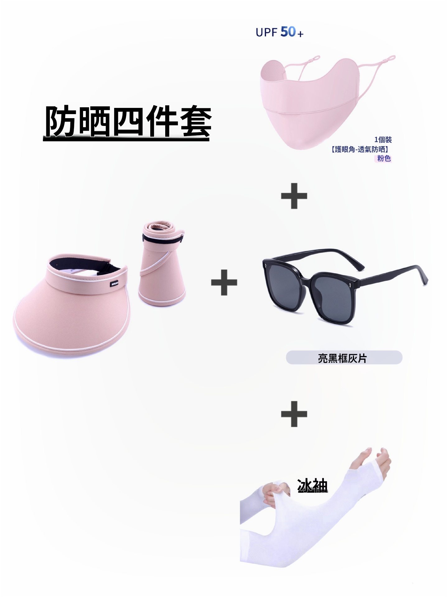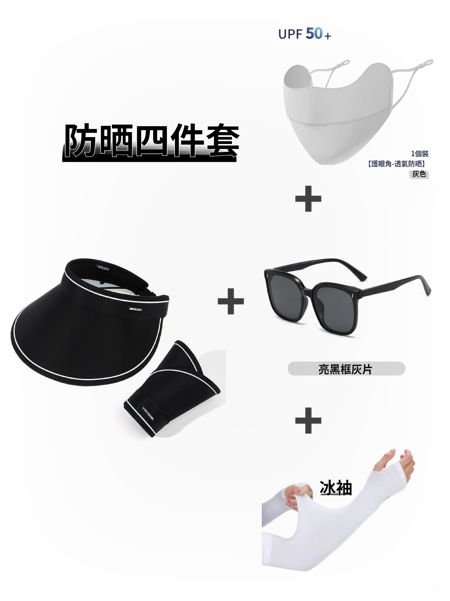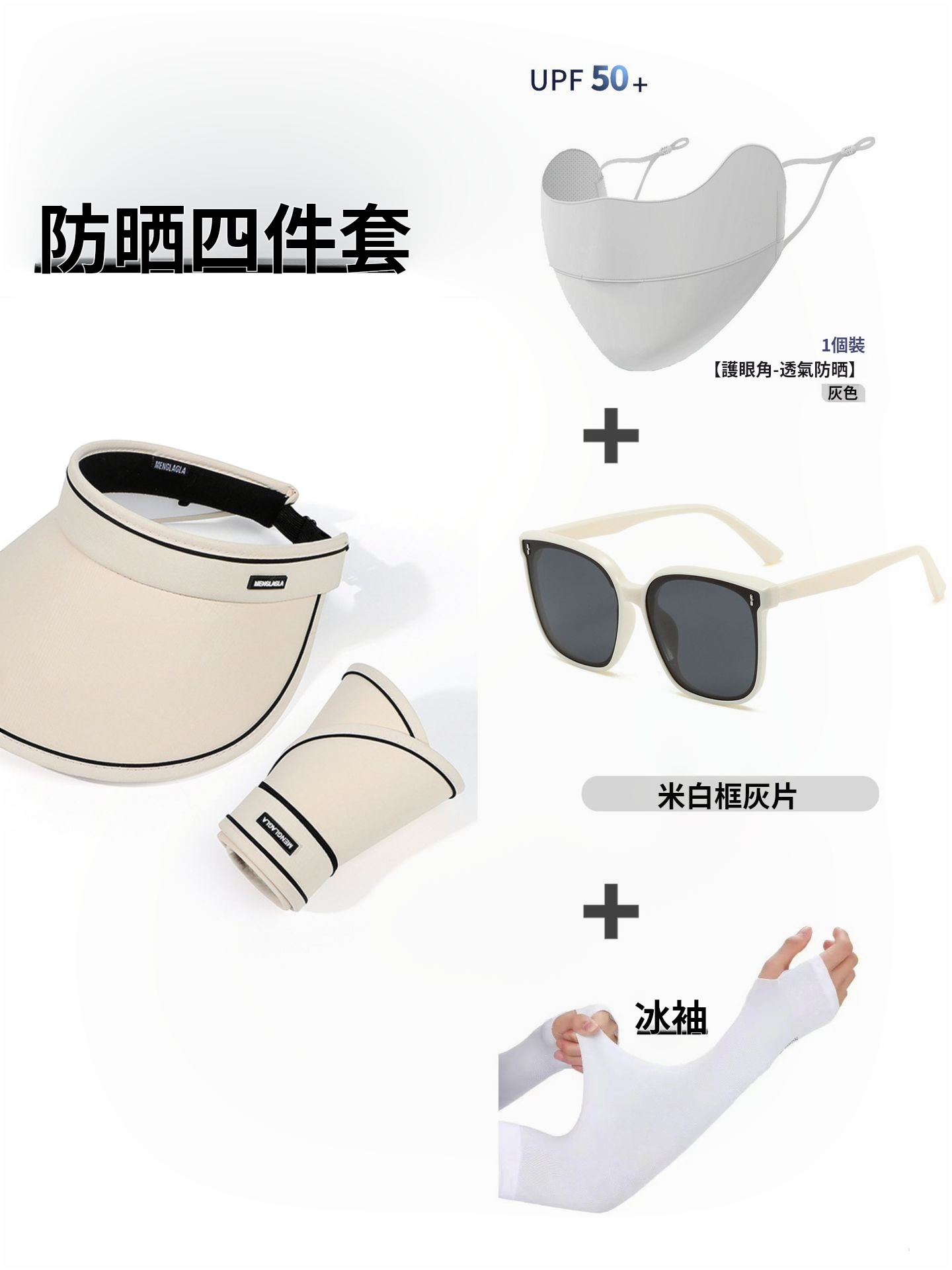 15分鐘前日系空頂帽可摺叠大帽簷時尚百搭遮陽帽墨鏡口罩冰袖防曬套裝 - 夏日出門必備四件套 一入組