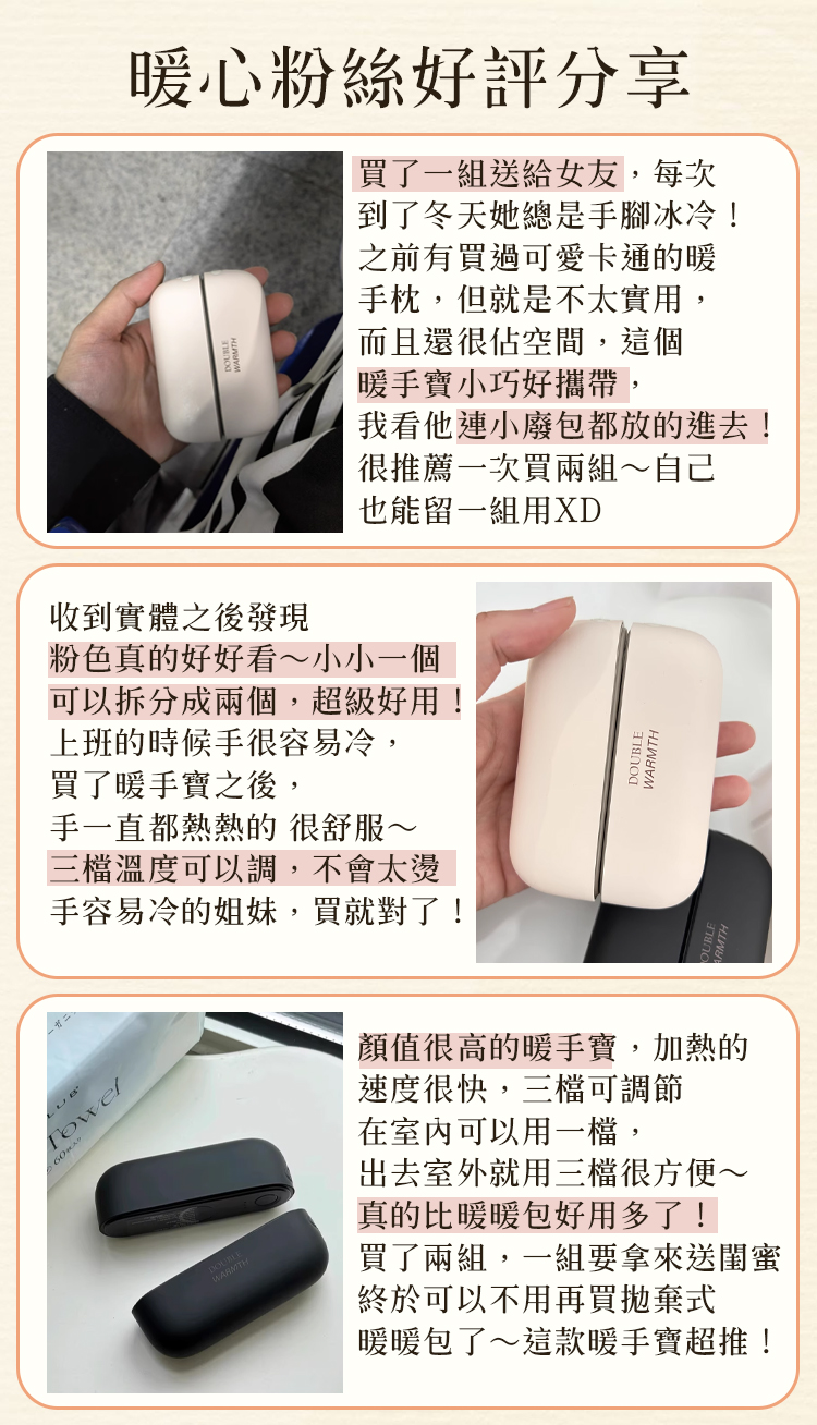 12分鐘前【口碑爆棚!冬天禦寒神器!!】磁吸暖手寶! 外套再厚手還是很冷!暖手過冬就靠它!!! 3秒瞬熱,迅速溫暖你的雙手!! 3檔調溫設計,隨心調你想要的溫度!! 磁吸組合設計,左右手分開使用不怕冷!! - 買一送一暖手寶 『2入組』僅需-NT$1088 均價NT$544