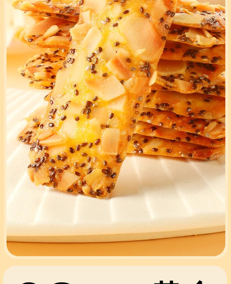 融合奇亞籽之高纖維、富含不飽和脂肪酸,紅棗補血益氣,山藥健脾益胃,椰子營養豐富。此薄脆美味可口,是健康零食佳選。無論代餐或平日享用,皆能為你提供充足能量,滋補身心。